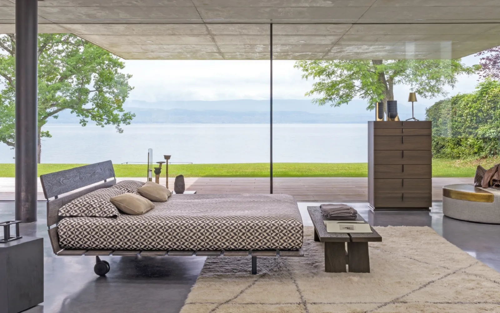 Letto d'ispirazione orientale, raffinato ed essenziale.